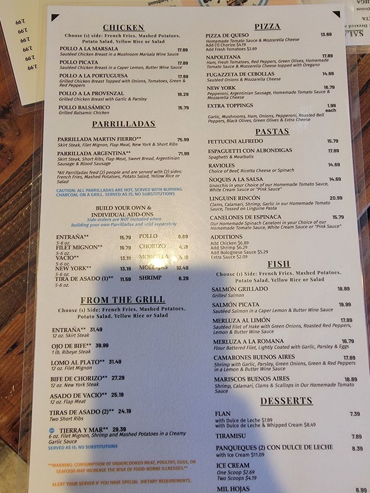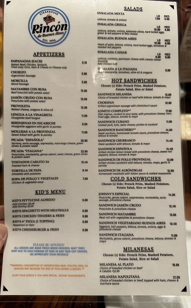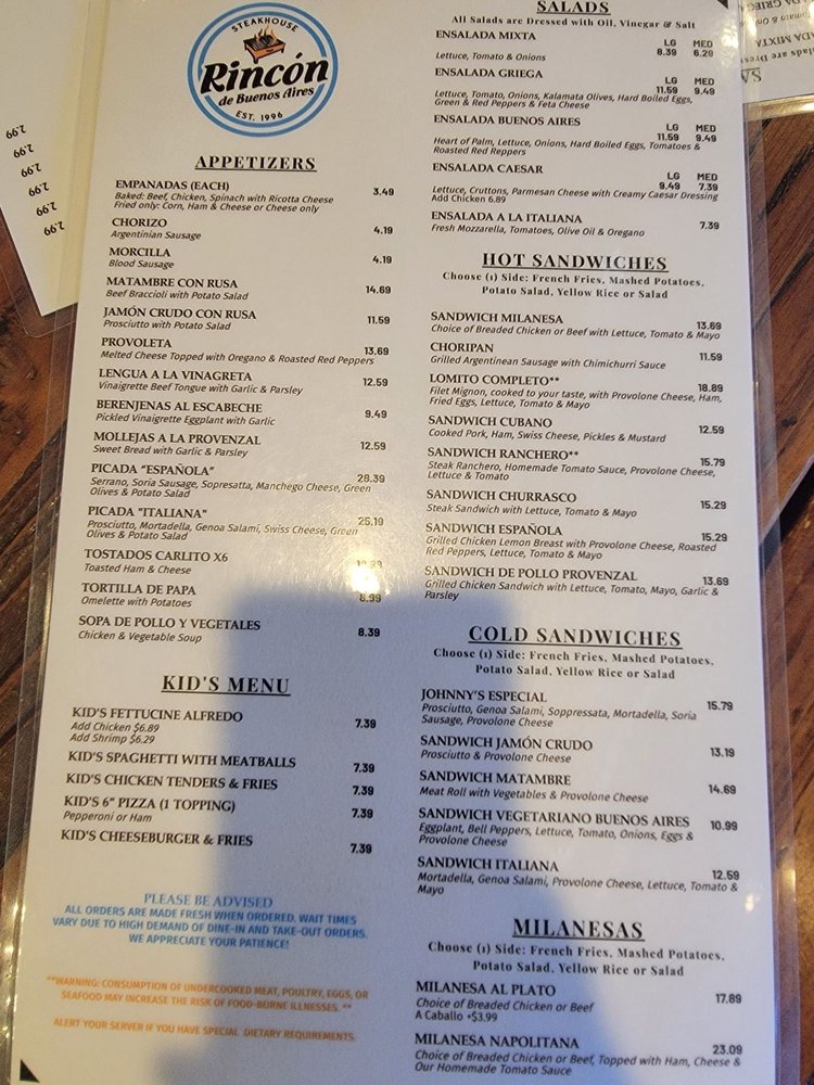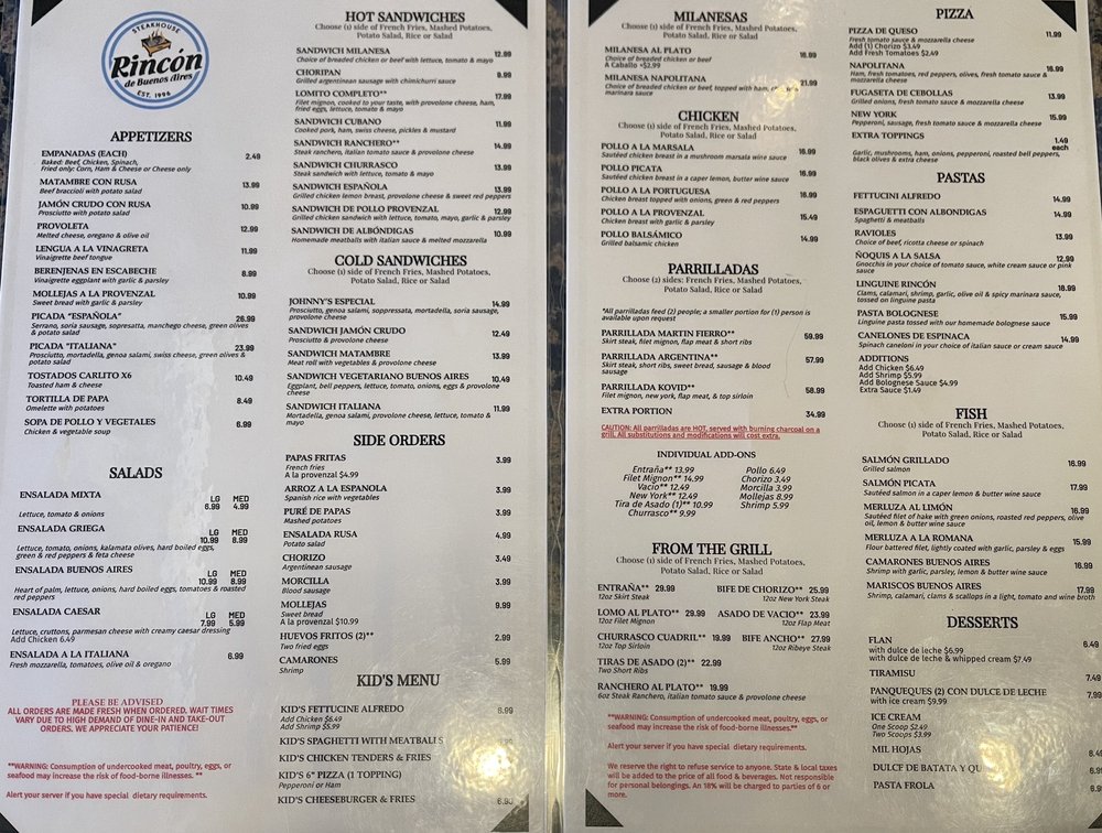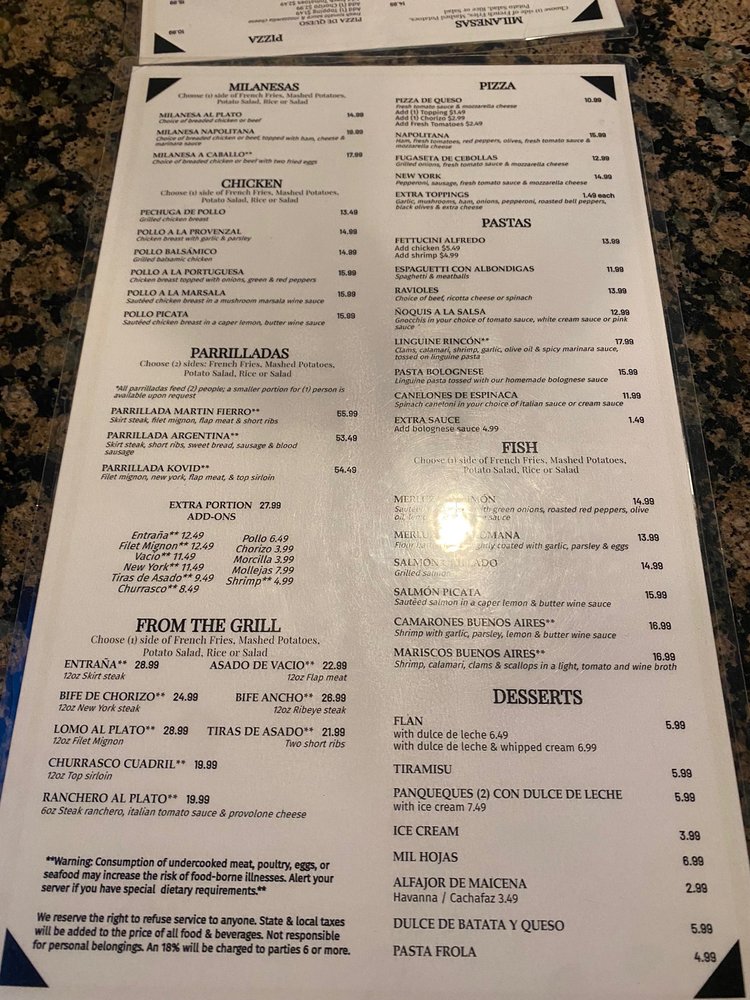 Introducing the menu at Rincón de Buenos Aires - Spring Mountain, a hidden gem in Chinatown, Las Vegas. This Argentine steakhouse offers a diverse range of options, from traditional grilled meats to delectable empanadas. With a classy yet casual ambiance, this restaurant caters to a variety of preferences, including Keto and vegetarian choices. The generous portions, excellent service, and authentic flavors make dining here a memorable experience. Don't miss the Entraña steak, Mollejas a la provenzal, or the Parrillada Martin Fierro for a true taste of Argentina. Pair your meal with a glass of Humberto Canale Malbec and indulge in Alfajores for dessert. Whether it's a family celebration or a casual dinner, Rincón de Buenos Aires promises a delightful culinary journey that will leave you coming back for more.